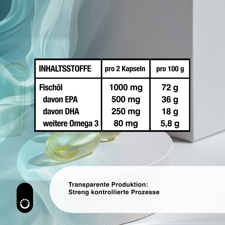 Hochdosiert 500 mg EPA und 250 mg DHA pro Tagesportion